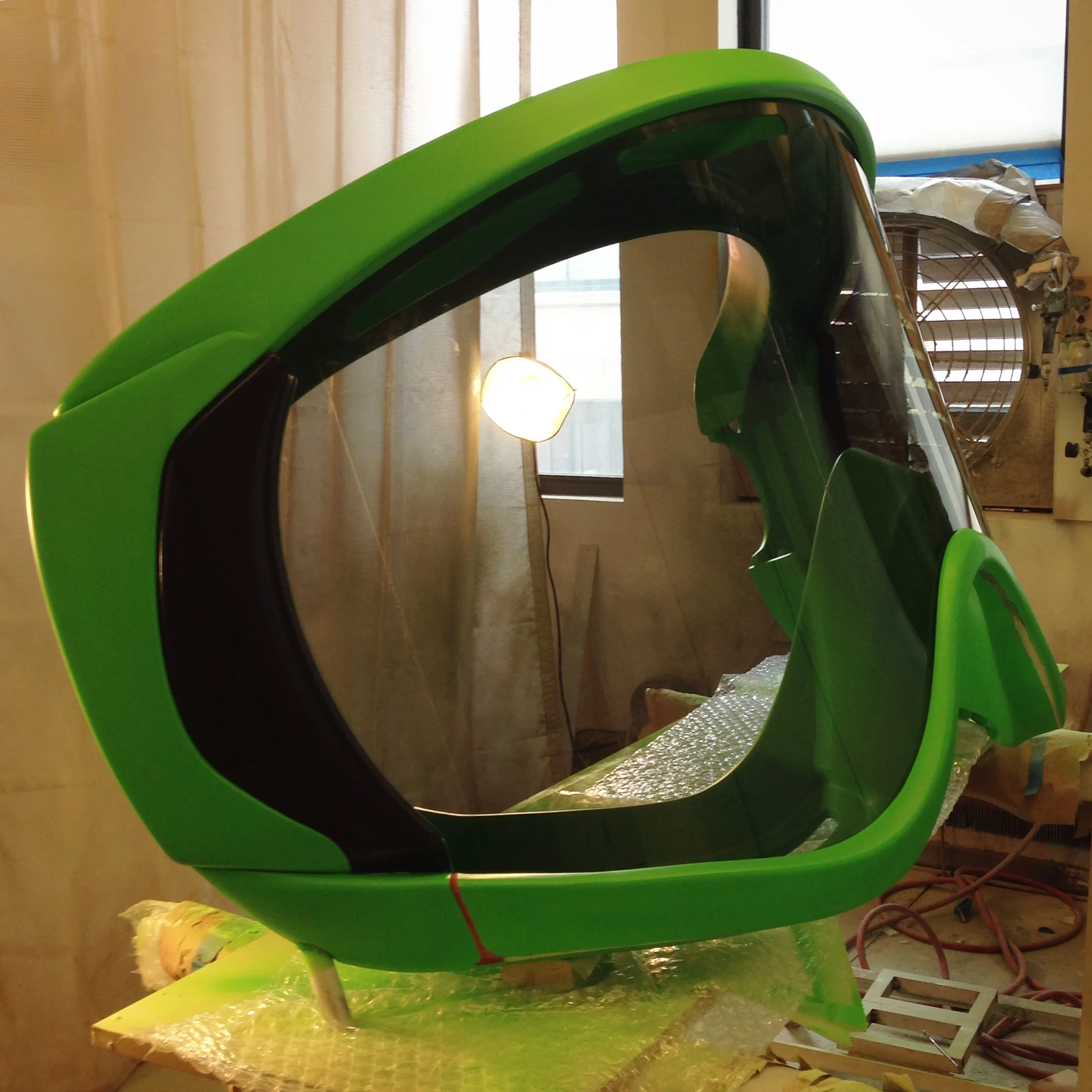 As Fabrication Designer, I TRANSFORMED the real-life Product into a freestanding Larger-Than-Life INSTALLATION PERFORMING a number of operations - modeling the geometry from scratch to turn the double-curved visor element into a single-curved element, incorporating the hidden support structure within, segmenting the overall geometry into efficient parts FOR CNC, And CAM Programming using flip-milling procedures on a 5-Axis CNC Machine.